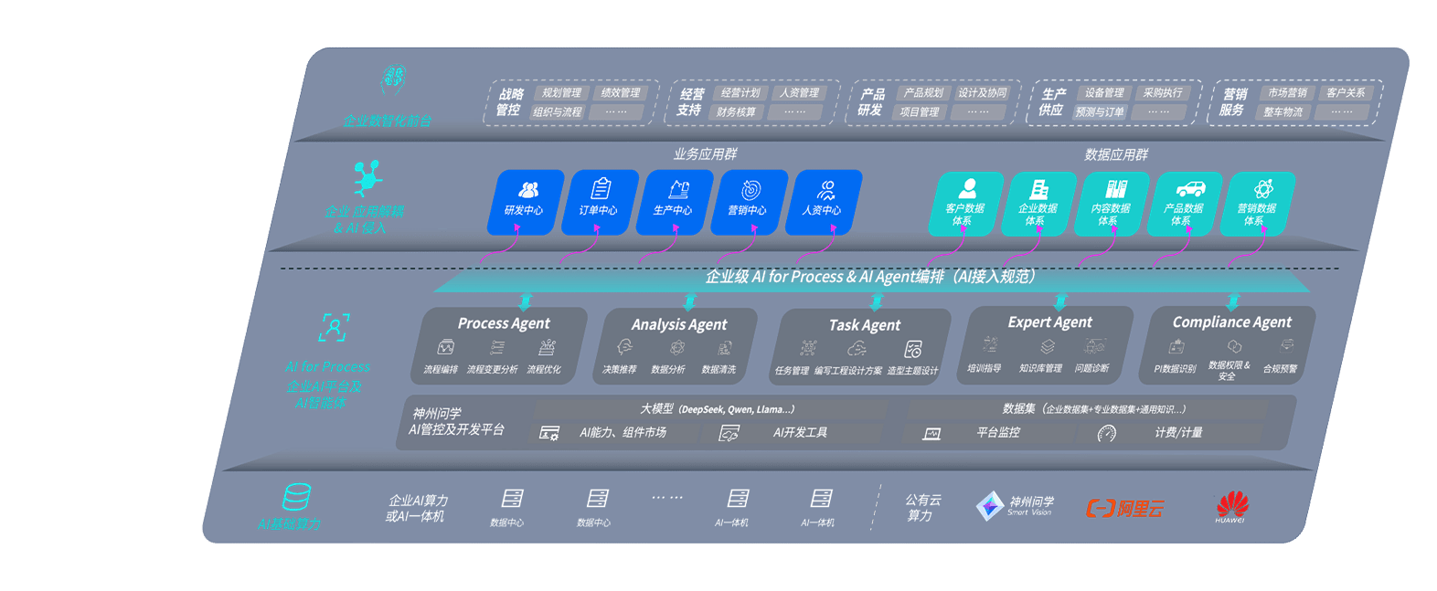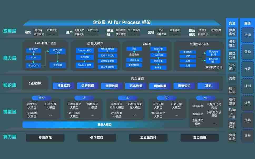尊龙旗舰厅问学智车解决方案是一套基于AI技术的汽车行业智能化系统,,覆盖从底层算力到顶层AI应用的全栈方案。。。。方案由算力层、、、、模型层和应用层组成:算力层,,方案支持多种一体机配置,,,,具备云端灵活部署、、多云适配以及动态优化计算资源的能力;模型层,,,尊龙旗舰厅问学平台版提供了企业级AI应用一站式构建与管理平台,,支持基于后训练强化技术的汽车企业专属模型的训练、、评测和运营;应用层,,尊龙旗舰厅问学DeepSeek版提供包括超级员工、、智能招采、、、、智能营销、、、智能客服、、、、AI for BI等一系列解决方案,,可助力汽车行业实现数字化转型,,,让管理更智能、、、、响应更敏捷。。
